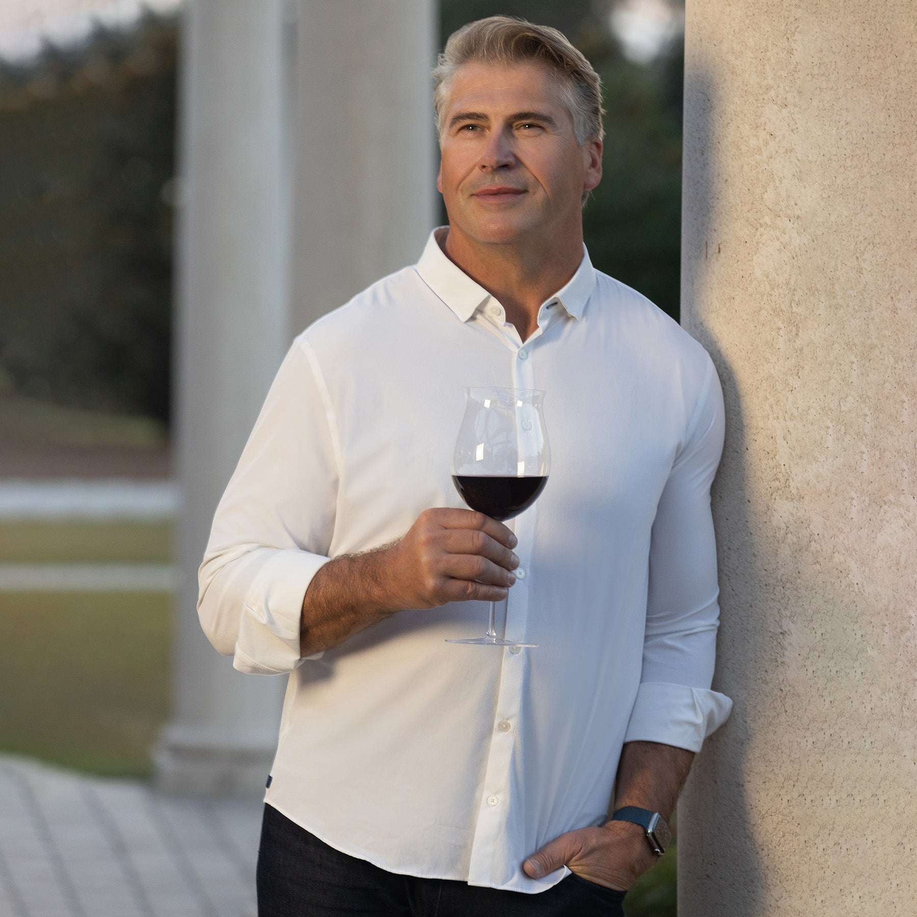 The Jeroboam glass has a beautiful tulip shape with a flared lip. Its unique design helps highlight the wonderful earthy tones of wines such as Cab Franc or a Pinotage. Holding 34 ounces and standing 11 inches tall, it also makes a terrific Sangria glass!