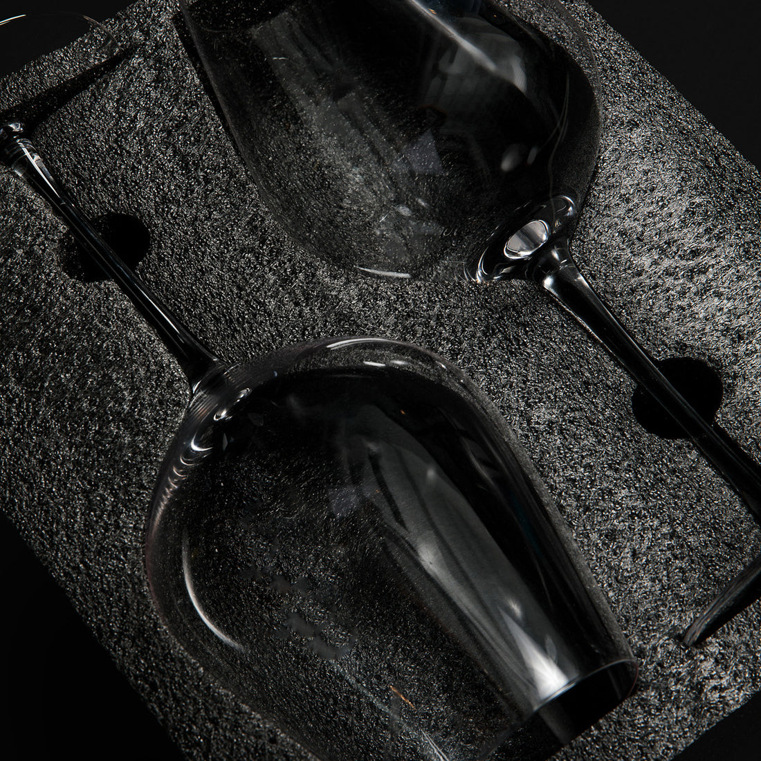 Our exquisitely hand-blown crystal glasses come in a protective foam casing. This casing keeps the glasses safe and sound during shipping.