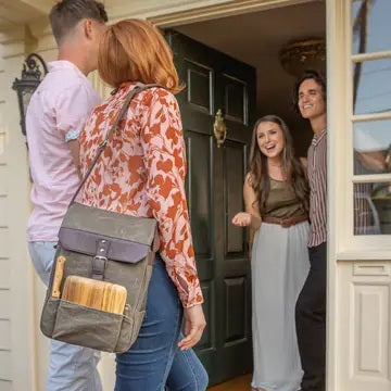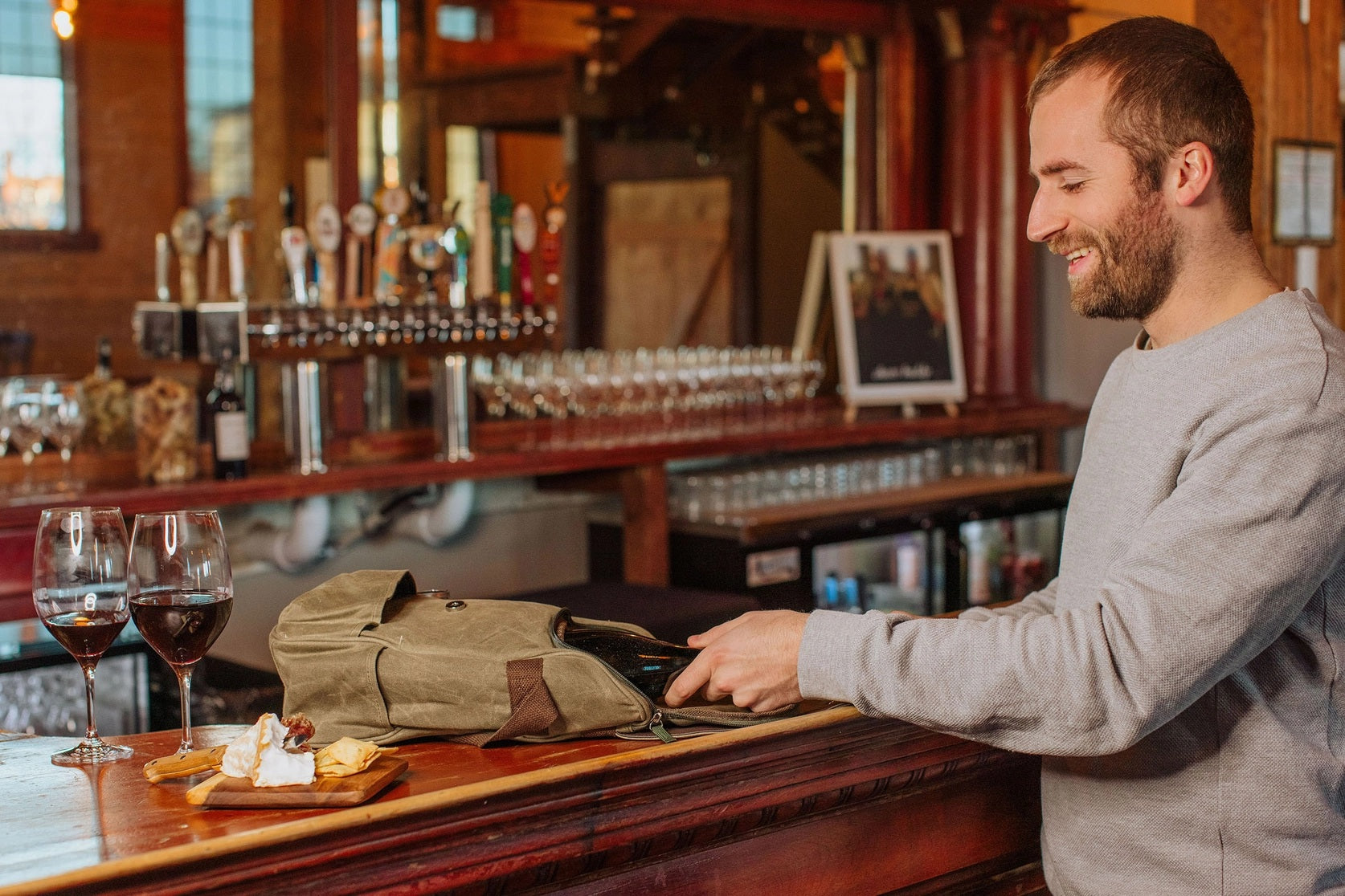 This 2-Bottle Waxed Canvas Wine Carrier with an insulated interior, cheese board, and knife set has everything you need for a picnic anywhere. With two insulated compartments for wine (or snacks), an Acacia wood board, stainless steel cheese knife, and waiter’s corkscrew, it’s ready for every adventure.